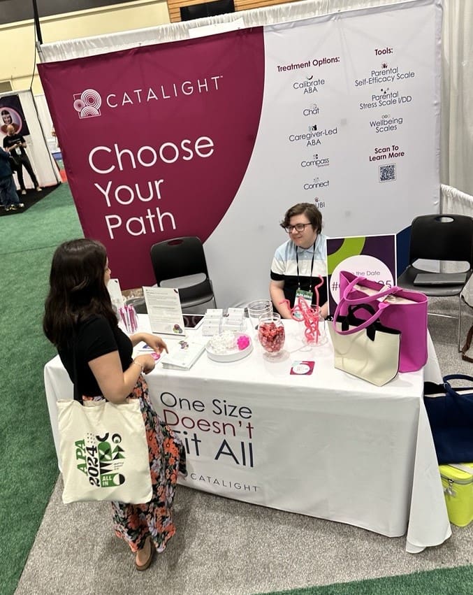 Photos: Catalight Calls for Behavioral Psychologists at the APA Convention to Explore New Research Article | August 12, 2024 Catalight attended the American Psychological Association (APA) Convention from Aug. 8-10 in Seattle to challenge long-held beliefs about autism treatment. At the convention, Catalight psychologists and clinicians addressed the growing body of research questioning the efficacy of high-hour applied behavioral analysis (ABA) for all and advocated for a more personalized approach to treatment for children with autism. Catalight’s delegation, including Chief Clinical Officer Doreen Samelson, Ed.D., Vice President of Clinical Excellence Lindsey Sneed, Ph.D., Vice President of Clinical Impact Brianna Fitchett, Director of Clinical Excellence Ian Cook and Research and Data Analyst Ben Pfingston, focused on emerging research that suggests lower hours of ABA therapy can be as effective, if not more so, as high-hour treatment. Dr. Sneed, co-hosted a skill-building session with Alana McVey, Ph.D., psychologist at the Center for Behavioral Medicine in Wisconsin, on treating mental health concerns among autistic individuals. In addition, she and Dr. Samelson gave to presentations on “Rethinking ABA for Autistic People: Challenging Assumptions and Guiding Change.”